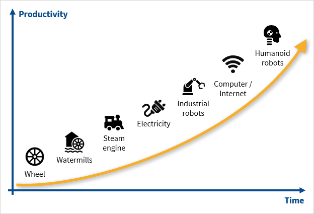 From a historical perspective, economic development has always been characterized by rising productivity through technological progress. This pathway to productivity has led to the development of robotics, AI, and, most recently, the fusion of both: humanoid robots. Building on our earlier research showing AI can cut costs and enhance processes by 25% on average and that process improvements can also lead to sustainability enhancements, we now take a closer look at three waves of robotic automation ‒ traditional industrial robots, collaborative robots (so called cobots), and the emerging class of AI-powered humanoid robots ‒ and how they are reshaping automotive production lines across the globe.
