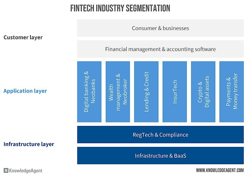 The accompanying market map shows areas where consolidation and integration are most active. The density of players in customer-facing Application Layer segments like Payments and Wealth Management signals a high potential for consolidation, while the companies in the Infrastructure Layer represent the strategic assets that enable the entire ecosystem's functionality and resilience.